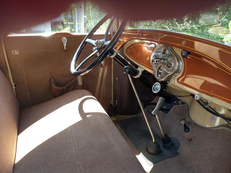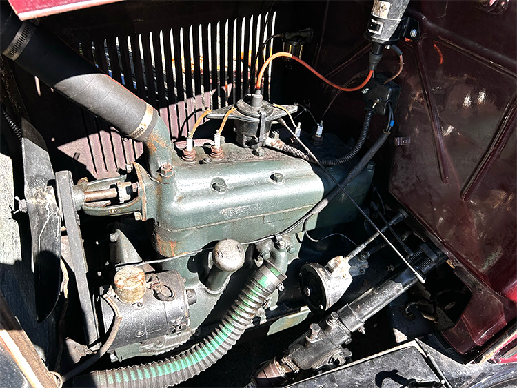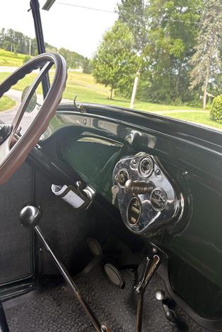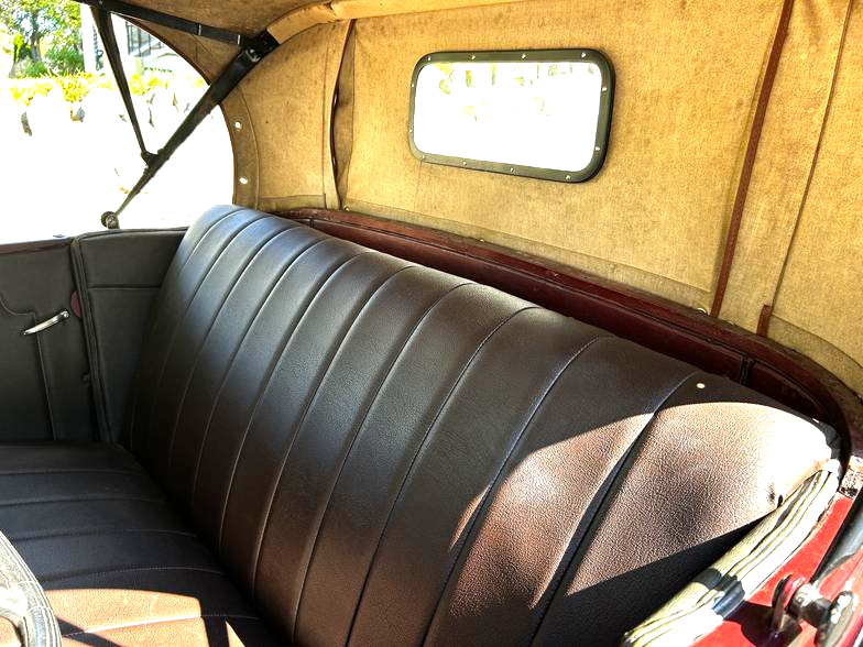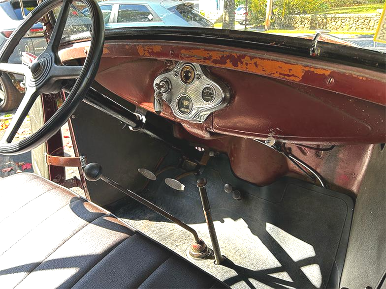 It has been garaged its entire “life” and has been painted many times, often school colors. Most recently the car had a professional partial restoration in 2008: new paint, new fenders and bumpers, new top, and tires. Also, the engine was removed, painted, and reinstalled with new air filter, muffler, and hoses. Seats were reupholstered in 2018. Steering was repaired in 2024 with new worm gear and steering column. At some point in the 40’s the windshield posts were damaged and had to be welded back to the frame. In other words, you can’t fold down the windshield forward as originally designed.